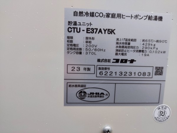 篠栗町萩尾 コロナ自然冷媒CO2家庭用ートポンプ給湯機貯湯ユニットCTU-E37AY5K エコキュート交換工事