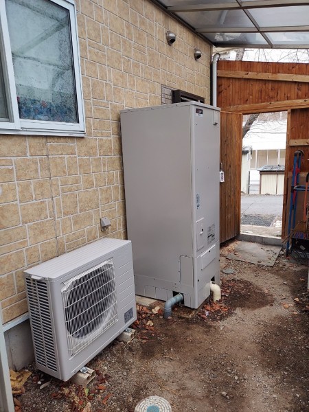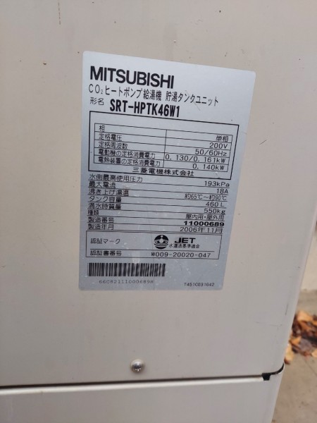 筑前町高田 三菱電機エコキュート→三菱電機自然冷媒CO2家庭用ヒートポンプ給湯機貯湯ユニットSRT-STK376D、ヒートポンプユニット エコキュート交換工事