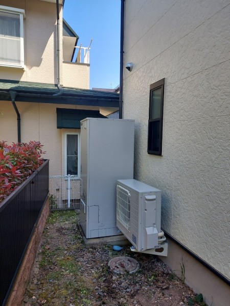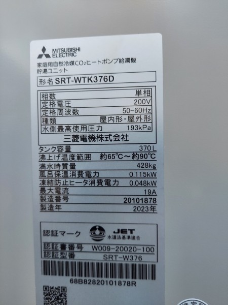 糸島市浦志 三菱電機自然冷媒CO2家庭用ヒートポンプ給湯機ヒートポンプユニットSRT-MUK456-A、貯湯ユニットSRT-WTK376D エコキュート交換工事