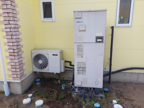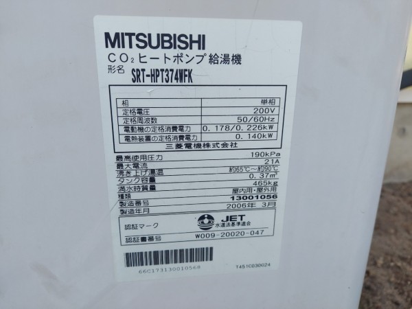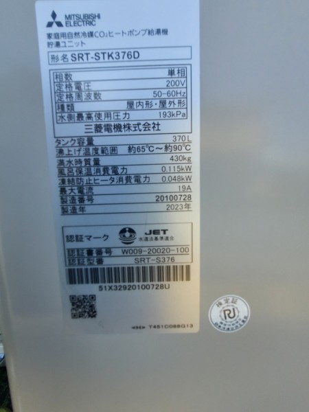 筑前町新町 三菱電機自然冷媒CO2家庭用ヒートポンプ給湯機 貯湯ユニットSRT-STK376D エコキュート交換工事