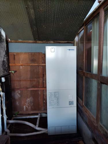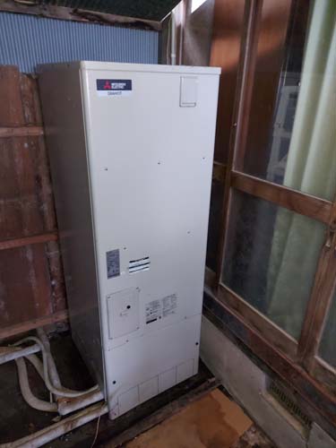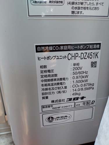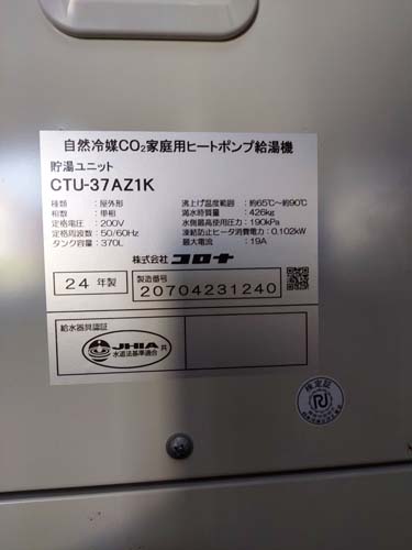 筑紫野市香園 三菱電機エコキュート→コロナ自然冷媒CO2家庭用ヒートポンプ給湯機 貯湯ユニットCTU-37AZ1K、ヒートポンプユニットCHP-DZ451K エコキュート交換工事