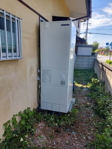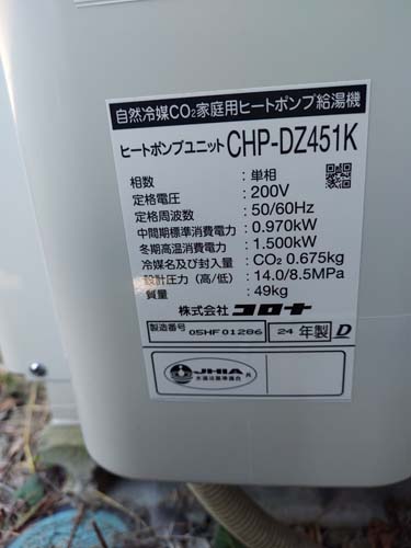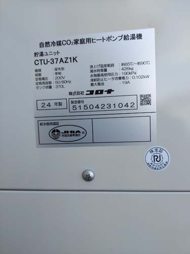 糸島市岩本 コロナ自然冷媒CO2家庭用ヒートポンプ給湯機ヒートポンプユニットCTU-37AZ1K、ヒートポンプユニットCHP-DZ451K エコキュート交換工事
