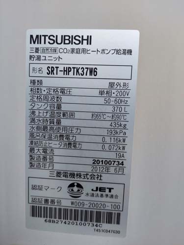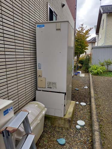 大野城市乙金 三菱電機エコキュート→コロナ自然冷媒CO2家庭用ヒートポンプ給湯機 ヒートポンプユニットCHP-DZ451K エコキュート交換工事