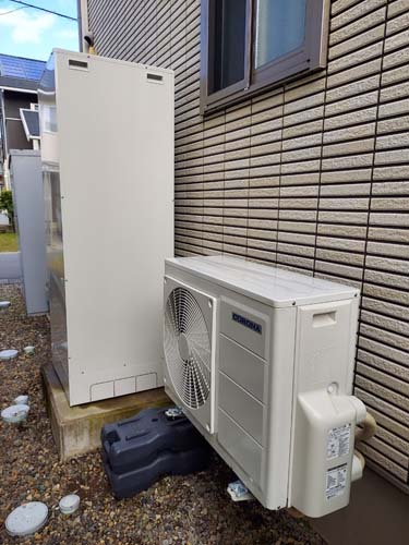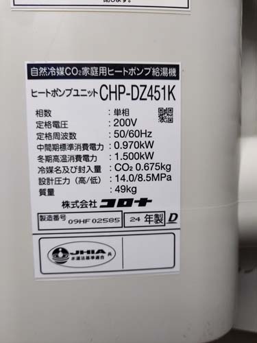 大野城市乙金 コロナ自然冷媒CO2家庭用ヒートポンプ給湯機 ヒートポンプユニットCHP-DZ451K エコキュート交換工事