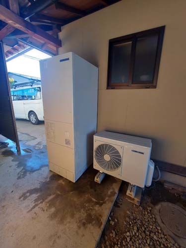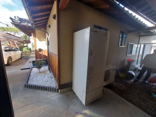トップページ > 工事事例一覧 > 福岡市南区 コロナ自然冷媒CO2家庭用ヒートポンプ給湯機貯湯ユニットCTU-37AZ1K、ヒートポンプユニットCHP-DZ451K エコキュート交換工事