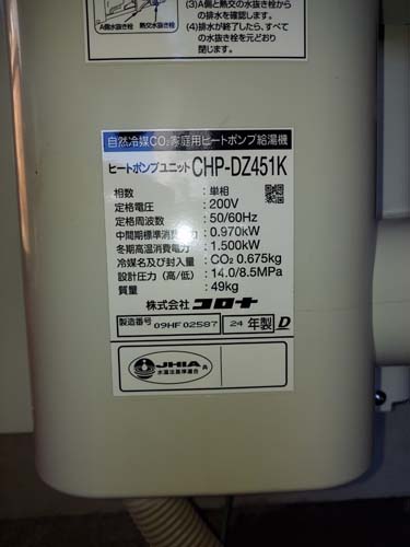 福岡市南区 SANDENエコキュート→コロナ自然冷媒CO2家庭用ヒートポンプ給湯機貯湯ユニットCTU-37AZ1K、ヒートポンプユニットCHP-DZ451K エコキュート交換工事