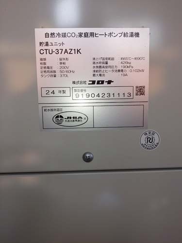 福岡市南区 コロナ自然冷媒CO2家庭用ヒートポンプ給湯機貯湯ユニットCTU-37AZ1K、ヒートポンプユニットCHP-DZ451K エコキュート交換工事|福岡県のエコキュート専門交換工事店|福岡エコキュート交換ショップ補助金対応可能
