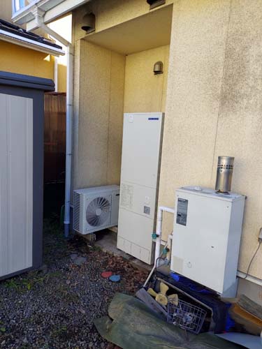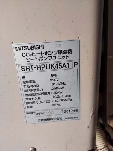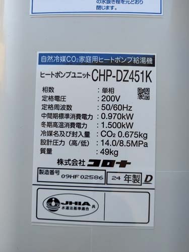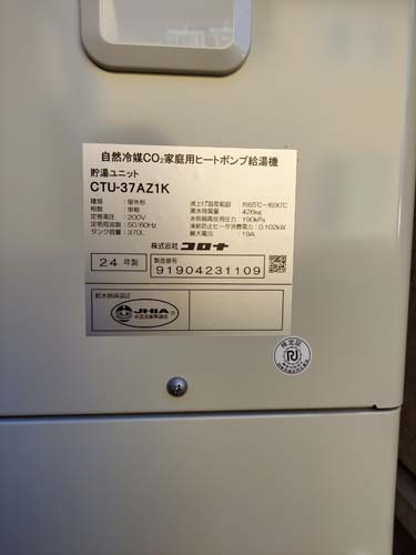 糸島市岩本 三菱電機エコキュートSRT-HPUK45A1→コロナ自然冷媒CO2家庭用ヒートポンプ給湯機貯湯ユニットCTU-37AZ1K、ヒートポンプユニットCHP-DZ451K エコキュート交換工事