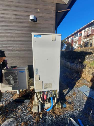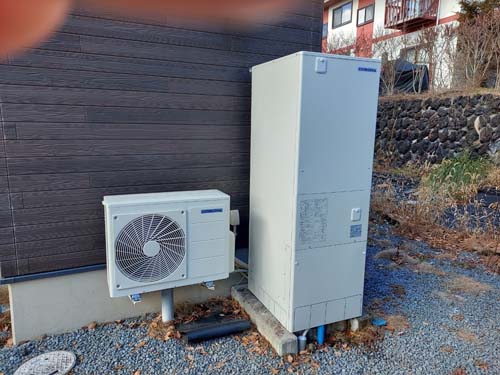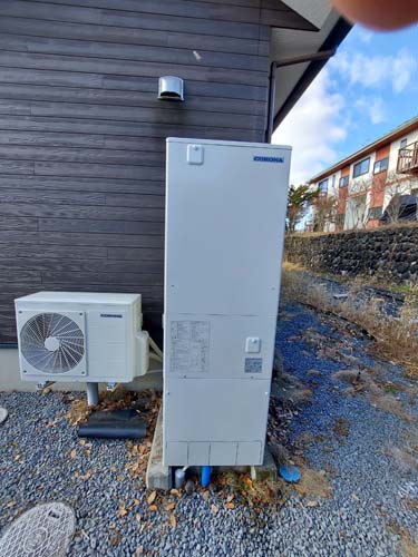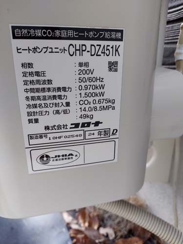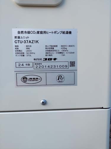 篠栗町和田 三菱電機エコキュート→コロナ自然冷媒CO2家庭用ヒートポンプ給湯機貯湯ユニットCTU-37AZ1K、ヒートポンプユニットCHP-DZ451K エコキュート交換工事