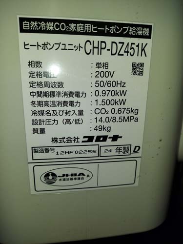 篠栗町萩尾 コロナ自然冷媒CO2家庭用ヒートポンプ給湯機 ヒートポンプユニットCHP-DZ451K エコキュート交換工事