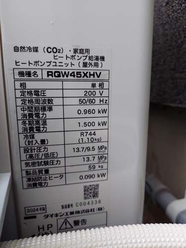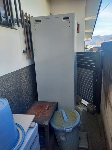 宇美町井野 コロナ自然冷媒CO2家庭用ヒートポンプ給湯機 ヒートポンプユニットCHP-458K→ダイキン工業自然冷媒CO2家庭用ヒートポンプ給湯機貯湯ユニットTU37XFHV、ヒートポンプユニットRQW45XHV エコキュート交換工事