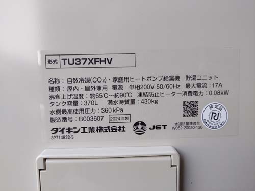 宇美町井野 ダイキン工業自然冷媒CO2家庭用ヒートポンプ給湯機貯湯ユニットTU37XFHV、ヒートポンプユニットRQW45XHV エコキュート交換工事