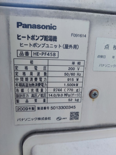 福岡市早良区 パナソニックヒートポンプ給湯機 ヒートポンプユニットHE-PF45B→コロナ自然冷媒CO2家庭用ヒートポンプ給湯機 ヒートポンプユニットCHP-DZ451K エコキュート交換工事