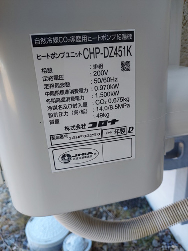 福岡市早良区 コロナ自然冷媒CO2家庭用ヒートポンプ給湯機 ヒートポンプユニットCHP-DZ451K エコキュート交換工事|福岡県のエコキュート専門交換工事店|福岡エコキュート交換ショップ補助金対応可能