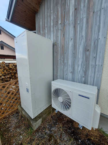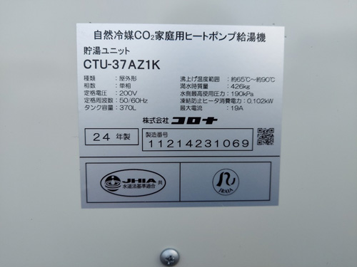 トップページ > 工事事例一覧 > 篠栗町和田 コロナ自然冷媒CO2家庭用ヒートポンプ給湯機貯湯ユニットCTU-37AZ1K、ヒートポンプユニットCHP-DZ451K エコキュート交換工事