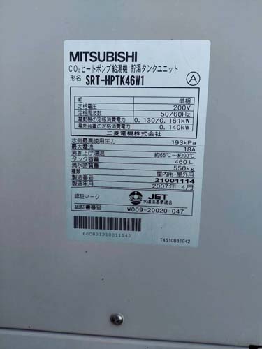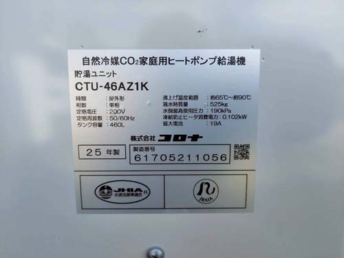 宗像市野坂 三菱電機CO2ヒートポンプ給湯機 貯湯タンクユニット SRT-HPTK46W1→コロナ自然冷媒CO2家庭用ヒートポンプ給湯機 ヒートポンプユニットCHP-DZ601K、貯湯ユニットCTU-46AZ1K エコキュート交換工事