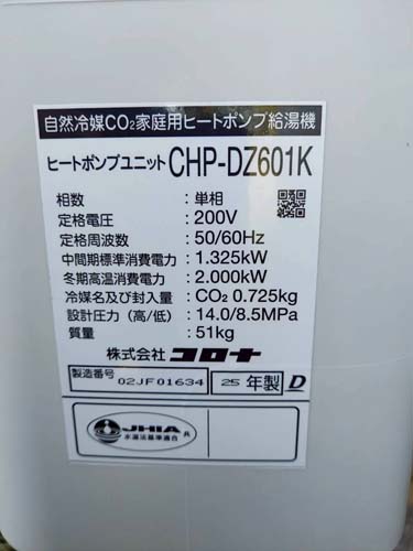 宗像市野坂 コロナ自然冷媒CO2家庭用ヒートポンプ給湯機 ヒートポンプユニットCHP-DZ601K、貯湯ユニットCTU-46AZ1K エコキュート交換工事|福岡県のエコキュート専門交換工事店|福岡エコキュート交換ショップ補助金対応可能