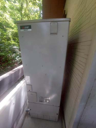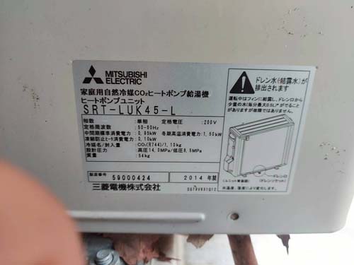 宗像市久原 三菱電機家庭用自然冷媒CO2ヒートポンプ給湯機 ヒートポンプユニットSRT-LUK45-L→ダイキン自然冷媒CO2・家庭用ヒートポンプ給湯機 ヒートポンプユニットRQW45YHV、貯湯ユニットTUA37YHV エコキュート交換工事