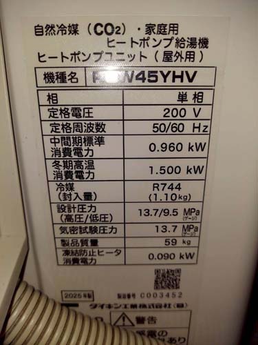 宗像市久原 ダイキン自然冷媒CO2・家庭用ヒートポンプ給湯機 ヒートポンプユニットRQW45YHV、貯湯ユニットTUA37YHV エコキュート交換工事